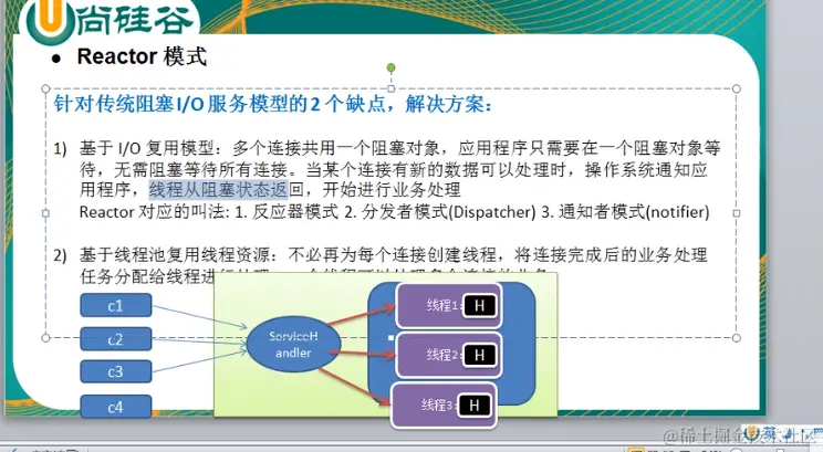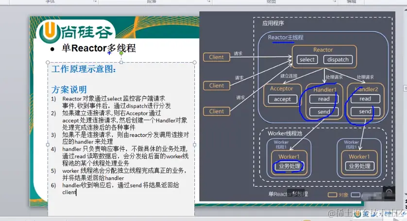 1.基于io复用模型,每个连接共用一个阻塞对象,应用程序只需要在一个阻塞对象中等待,无需阻塞等待所有的连接,当某个连接有新的数据可以处理时,操作系统就通知对应的程序 从阻塞状态返回,分给后面的线程去处理