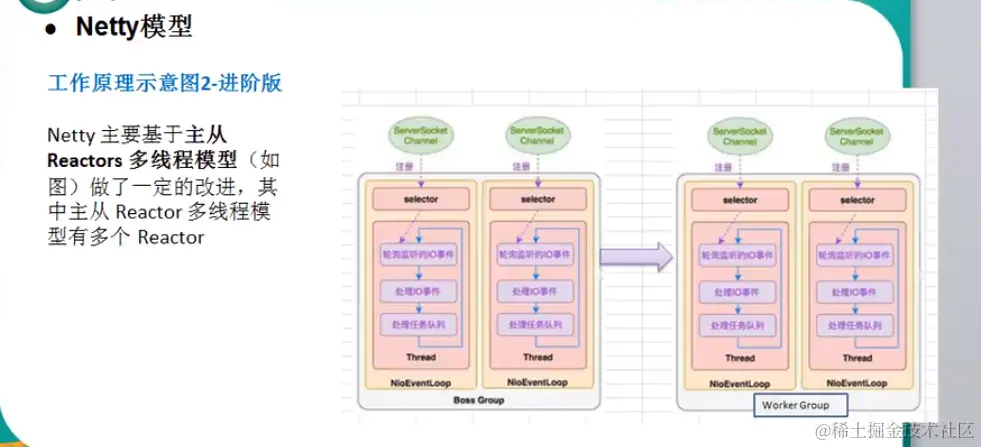 Netty是一个基于事件驱动的 异步的网络模型; 其次Netty是主从Reactor的基础上改进了,加了Selector等(之前没学明白的时候一直被Selector和Reactor搞迷糊)