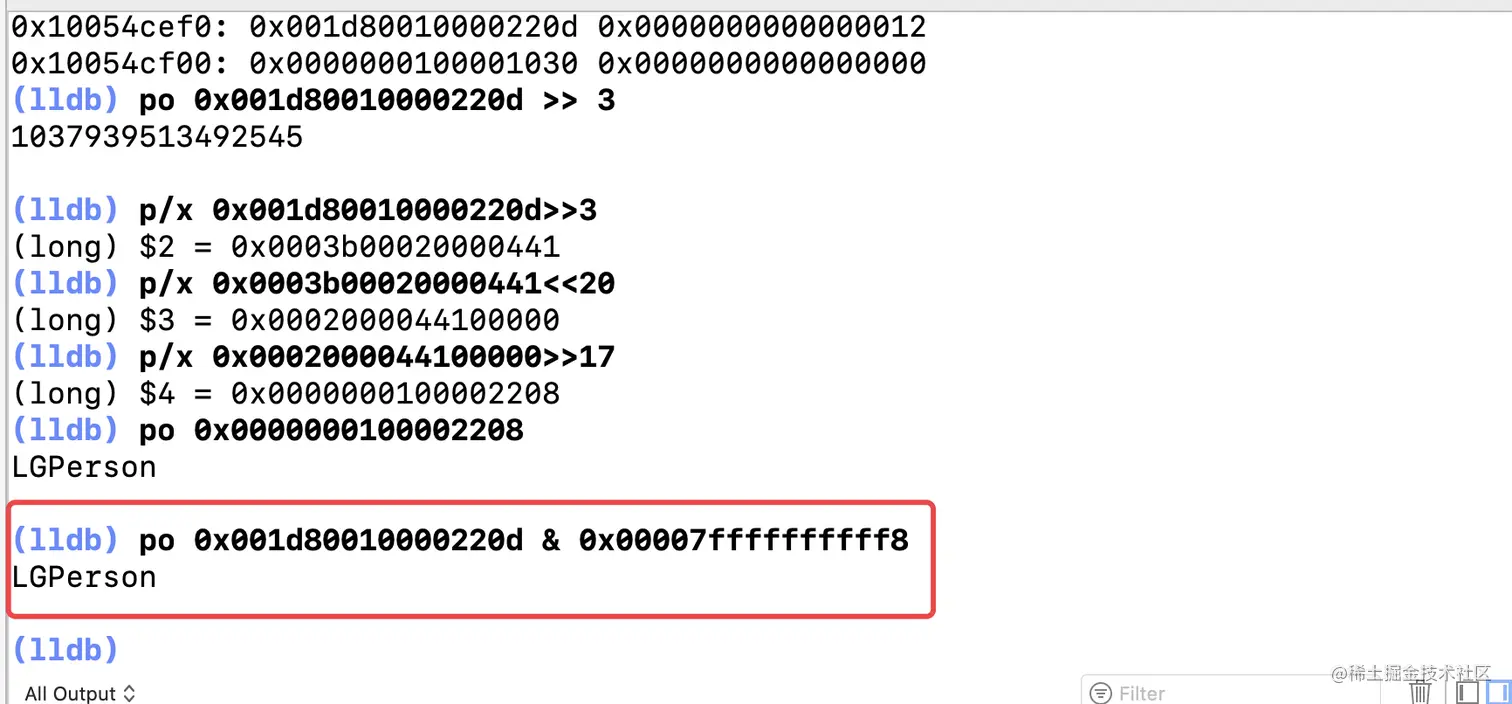 其实我们还可以直接通过ISA_MASK:0x00007ffffffffff8来从isa中打印出类信息