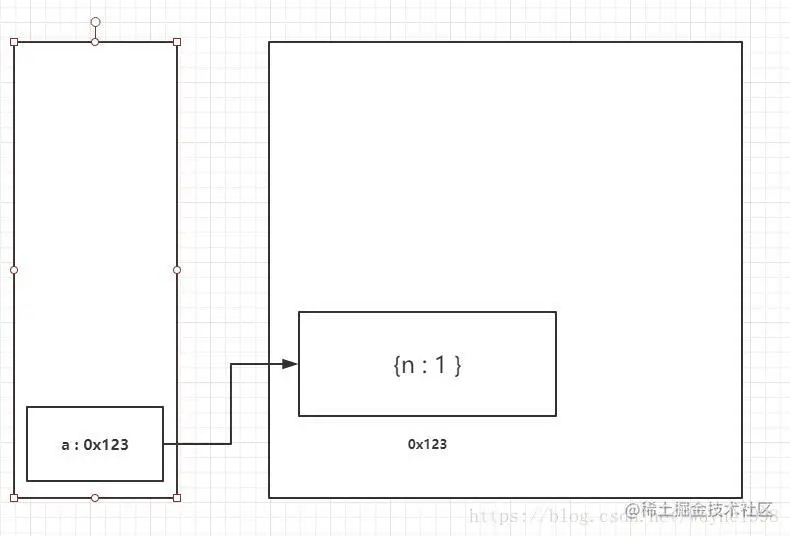 执行var a = {n : 1};时,先在堆空间中开辟一块内存空间,存放对象a,同时在栈中存放该对象在堆中的地址。