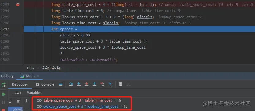 这里有个三目表达式。如果为真则使用 tableswitch ,为假则使用 lookupswitch。