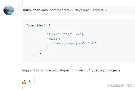 issue 里有老哥建议使用传统的 function 关键字声明函数组件,但我们如果想要使用箭头函数带来的便利,这样的方法就行不通。有不少讨论者也希望能够保留箭头函数的形式,其中有人提出这样的写法可以避免报错: