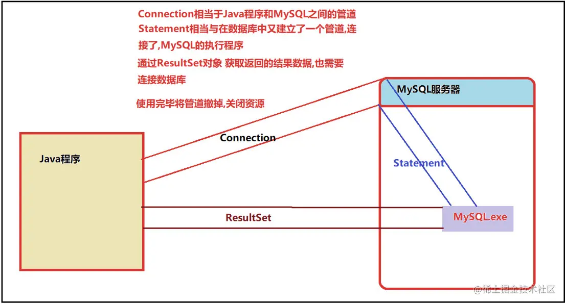 - 首先获取 Connection 对象,用于和数据库建立连接管道。