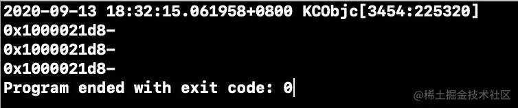 NSLog(@"\n%p-\n%p-\n%p-", class1, class2, class3);