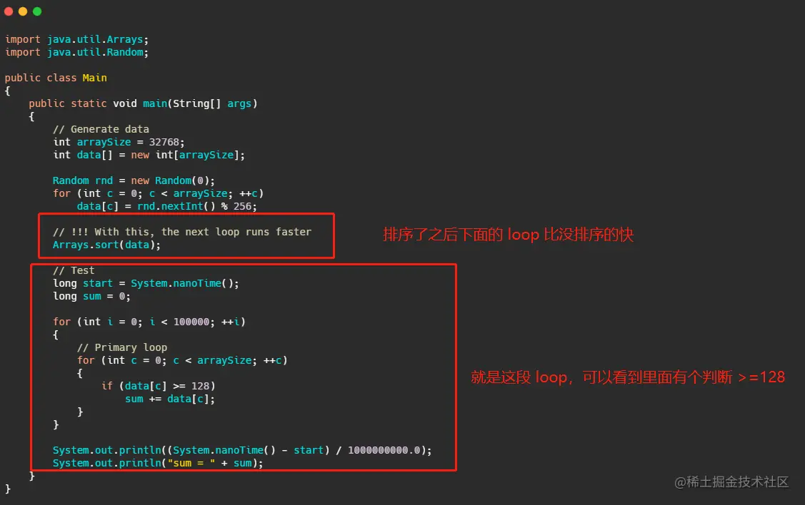 这个问题在那篇博客开头就被提出来了,很明显这也是和分支预测有关系,既然看到了索性就再分析一波,大伙可以在脑海里先回答一下这个问题,毕竟咱们都知道答案了,看看思路清晰不。