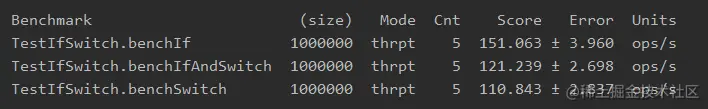 题外话: 我看网上也有对比 if 和 switch 的,它们对比出来的结果是 switch 优于 if,首先 jmh 就没写对,定义一个常量来测试 if 和 switch,并且测试方法的 result 写了没有消费,这代码也不知道会被 JIT 优化成啥样了,写了几十行,可能直接优化成 return 某个值了。