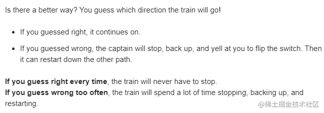 猜对了火车就不用停,继续开。猜错了就停车然后倒车然后换道再开。