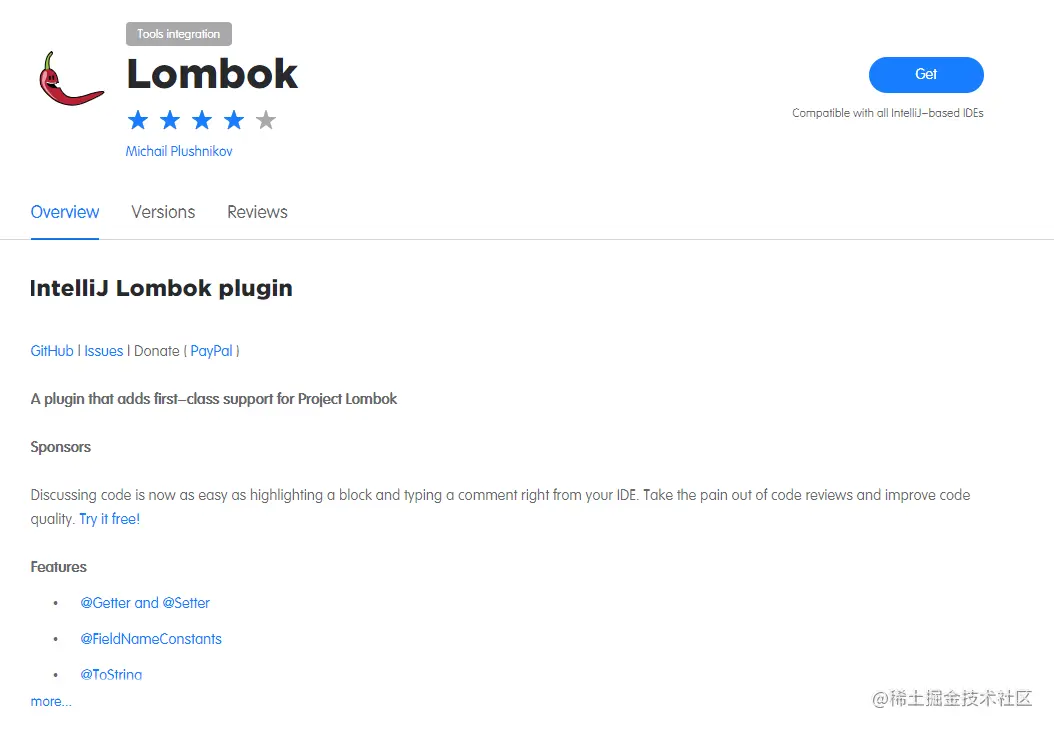 Sponsors 提供了一流的支持 讨论代码现在变得非常容易,只需突出显示一个块并在IDE中键入注释即可。减轻代码审查的烦恼并提高代码质量,实体类我们都是需要写有参无参get set非常麻烦,现在只需要来个小辣椒可解决不少事情