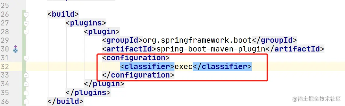 - 解决方式在需要引用Jar包pom文件中的Maven打包插件如下书写,重点是 configuration里面的配置