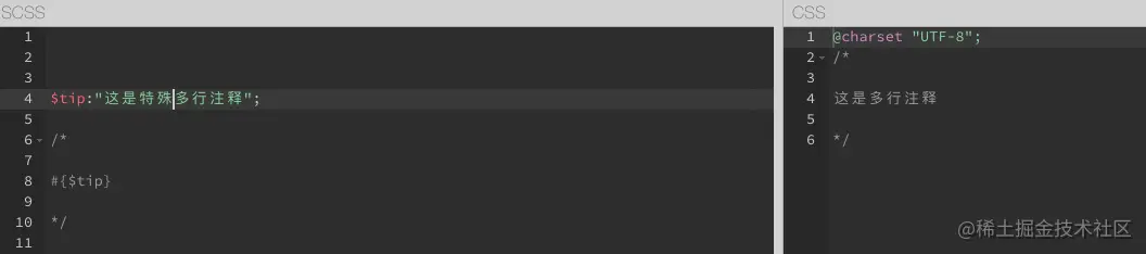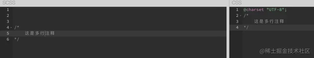 多行注释,在编译成css的时候,会被编译👇