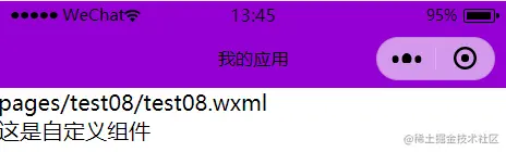 接着在组件WXML中随便写点东西,然后打开想要引用组件的页面,首先在 json 中说明引用组件