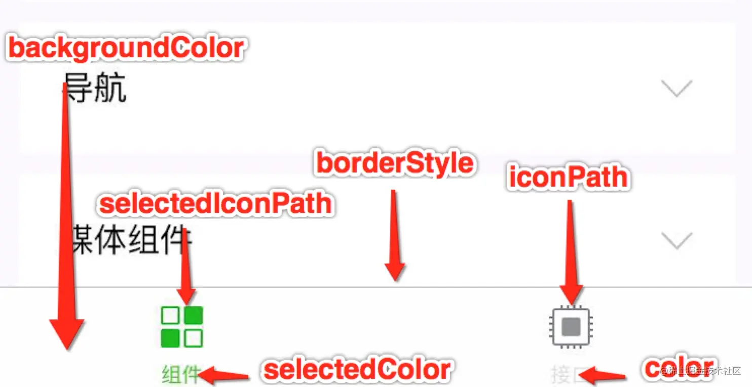 | selectedIconPath | string | 否 | 选中时的图片路径,icon 大小限制为 40kb,建议尺寸为 81px * 81px,不支持网络图片。 当 position 为 top 时,不显示 icon。**** |