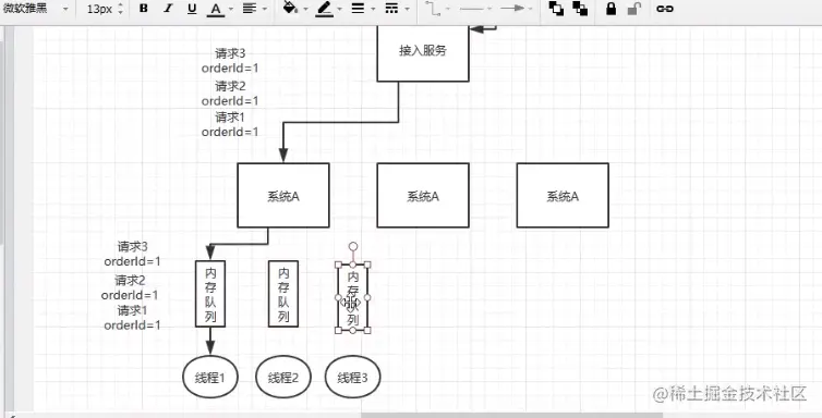 大概流程是 先放到接入服务里面,id一样,然后分发到一个系统里面去处理,如果系统里是多线程的话,那就设置内存队列,这个内存队列也是用hash去做,分到同一个队列里去处理,基本能保持顺序性