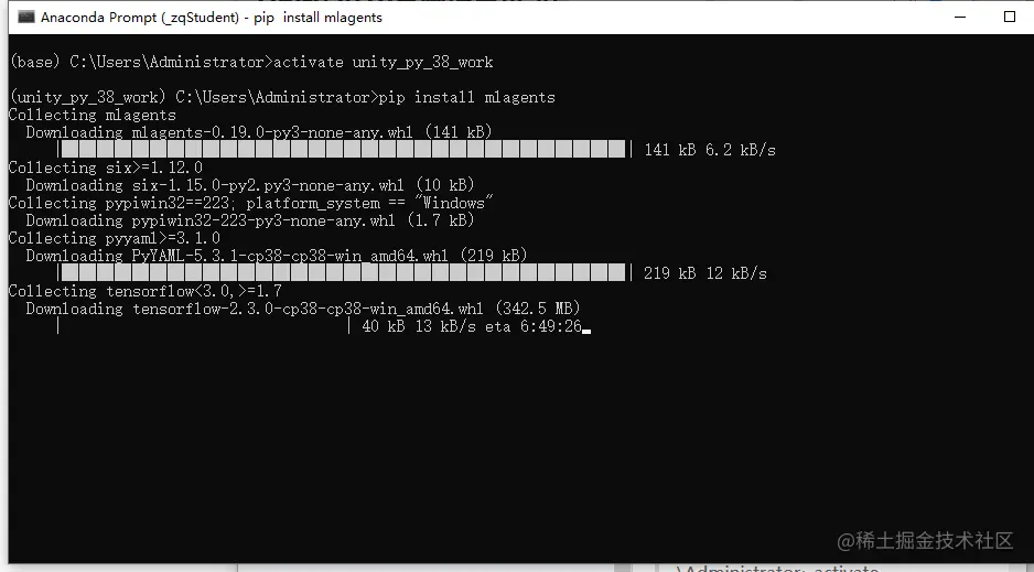 9点56分时安装mlagents(unity_py_38_work) C:\Users\Administrator>pip install mlagents