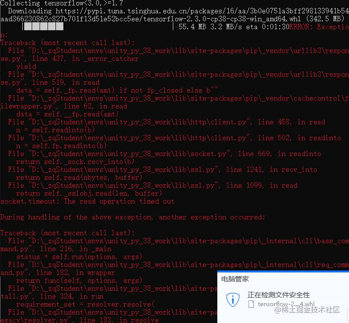 pip._vendor.urllib3.exceptions.ReadTimeoutError: HTTPSConnectionPool(host='mirrors.tuna.tsinghua.edu.cn', port=443): Read timed out.
