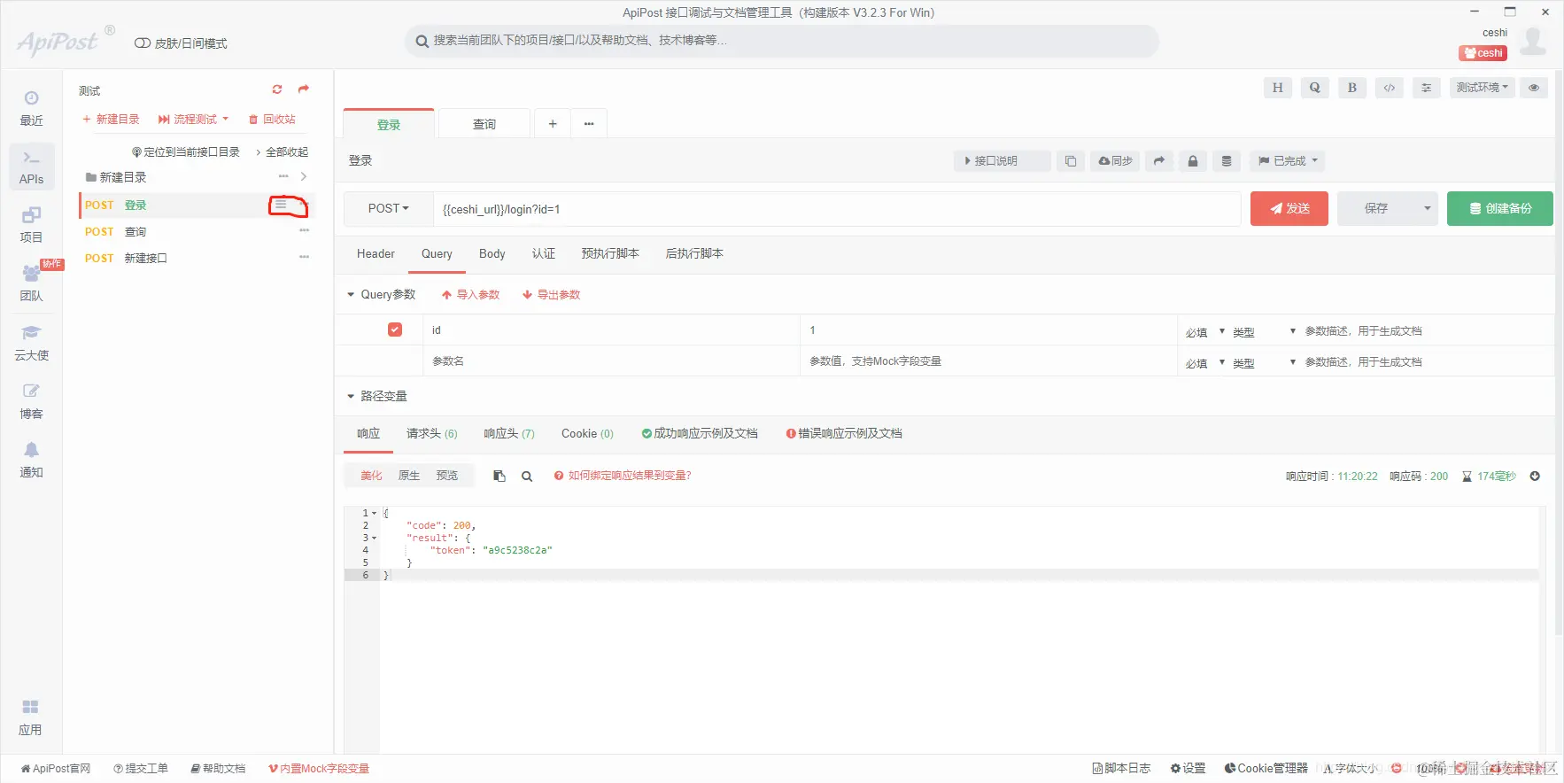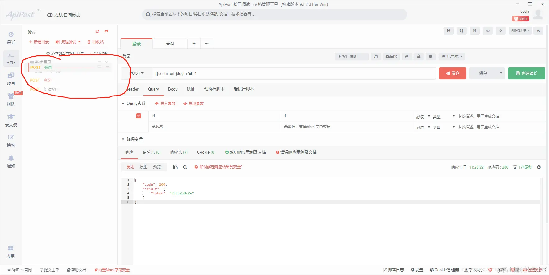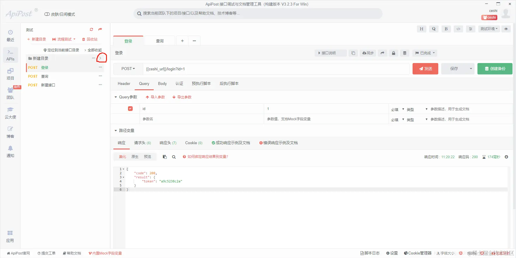 【教程】ApiPost3.0怎样文档移动和文档管理 清清青青 2020-09-14 157 阅读1分钟 apipost3.0版本的接口文档管理和接口文档移动教程 新建一个目录 创建完成命名之后,我们把要想要转移进去的接口文件转移进去,在这里apipost需要按住接口文件中的三个横线的图标才可以拖动,鼠标移动到接口文档上才会显示着三个横线 然后光这样还是移动不到对应的目录中,我们需要点击目录右侧的>图标 点击之后目录会展开 然后我们选择接口文件按住三横线图标进行拖拽就可以实现接口文档移动功能
