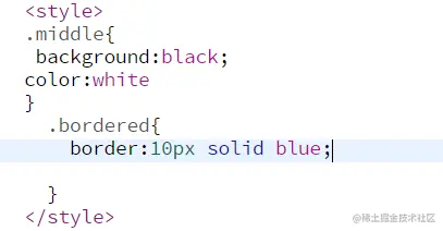class:给标签分一个类(class可以添加多个),但是class有一个问题,举例:在<head中定义style,使用的方法是[class=middle]和[class=bordered]时,<div class=""middle bordered"">,就无法生效,需要按照下面的方法来定义:.middle{}的定义方式: