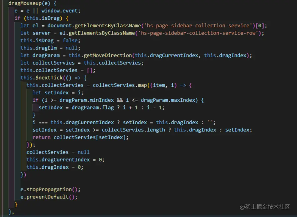 拖拽结束时,根绝元素最后移动方向,调整相对应数据内的排序,将所有状态重置