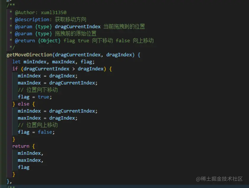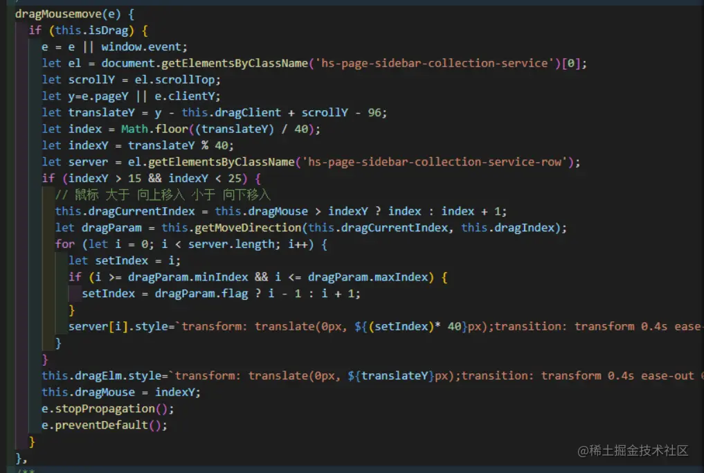 移动时需时刻计算当前元素的index,设置一个触发元素index变化的范围,例如:行高40px,15-25px范围内进行index变化,时刻记录上一次鼠标位置,根据上一次鼠标位置判断当前鼠标移入状态是向上移还是向下移动,根据移动方向调整index,判断当前位置相对于初始位置的移动方向,调整所有列表的位置。