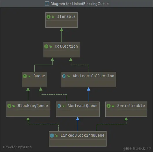它是实现了BlockingQueue和序列化,继承自AbstractQueue。 内部实现了一个静态节点类