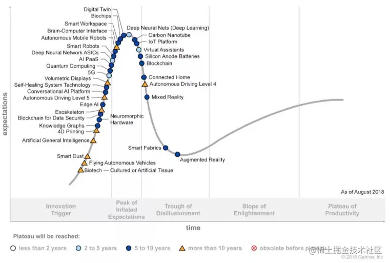 ▲2018年新兴技术Gartner曲线图,资料来源:Gartner
