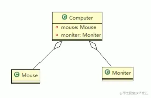 关联关系的特例,表示整体与部分的关系,整体和部分可以分离 - 组合关系