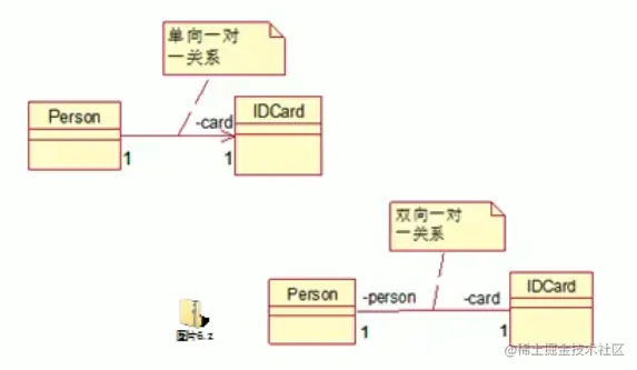 - 单向关系 Person 中有成员变量 IDCard IDCard 中没有 Person