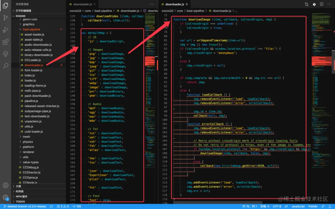 通过上面的图,我们找到了3个 loader 的初始化入口了,在依次翻阅 assetloader,downloader,loader 的相关实现之后,我们可以发现突破口 downloader.js