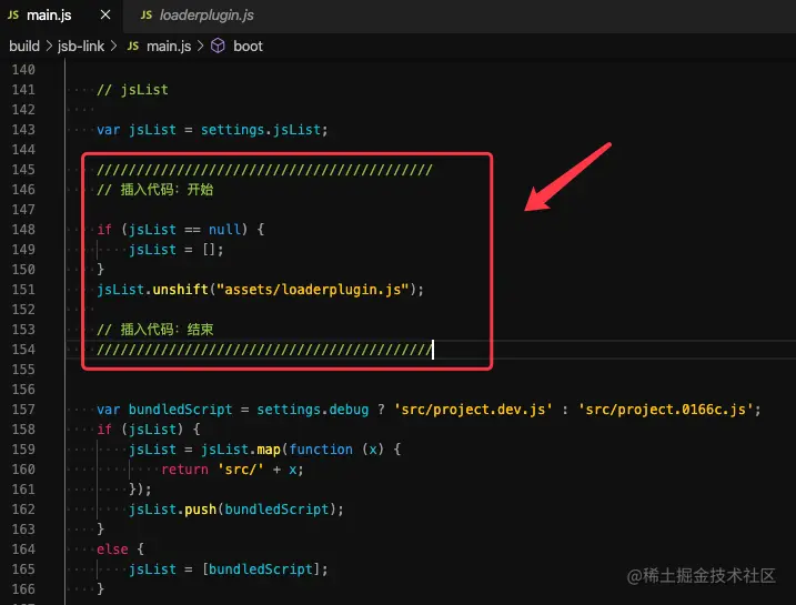 修改 main.js ,让我们的插件脚本先加入到 jsList 变量的前面即可
