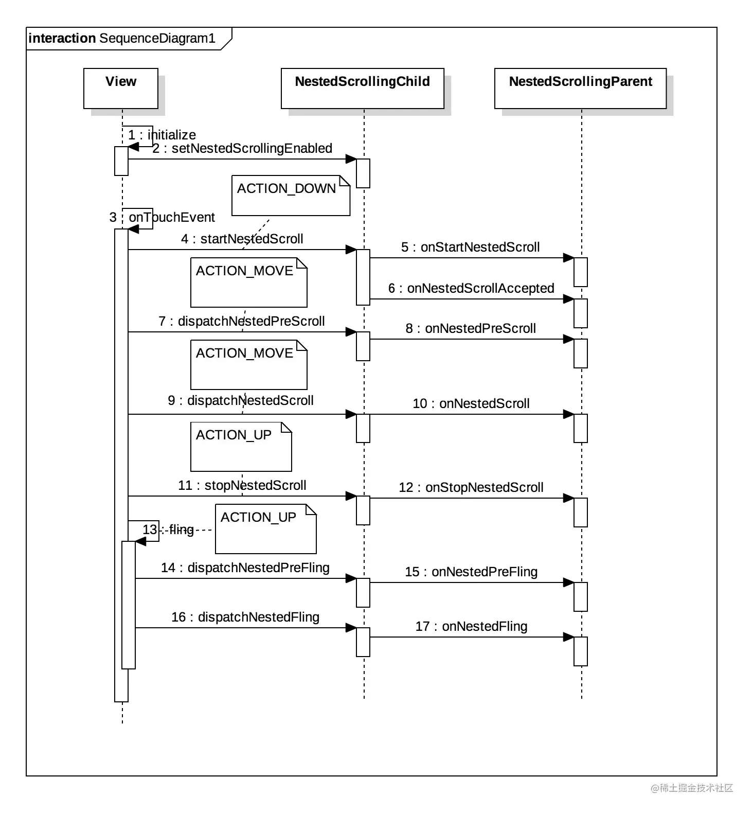 - mFirstTouchTarget 记录的是该View第一个接收该手势的子View