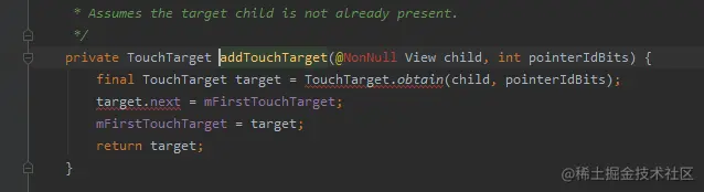 - mFirstTouchTarget 是TouchTarget, 是一个链表。