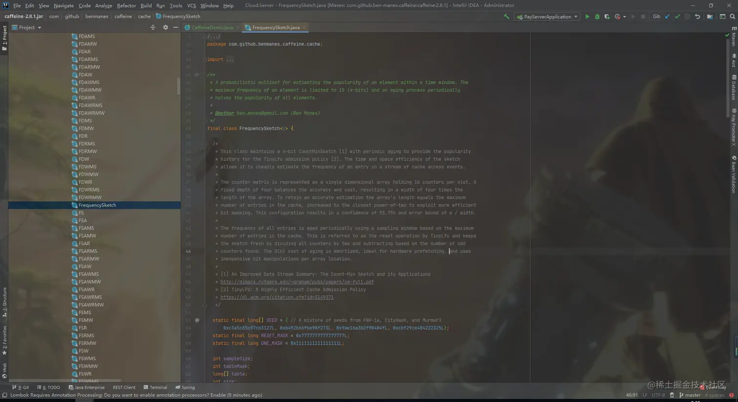 4-bit也就意味着统计的key最大使用频率为15,具体的实现逻辑可以参考源代码中的FrequencySketch类