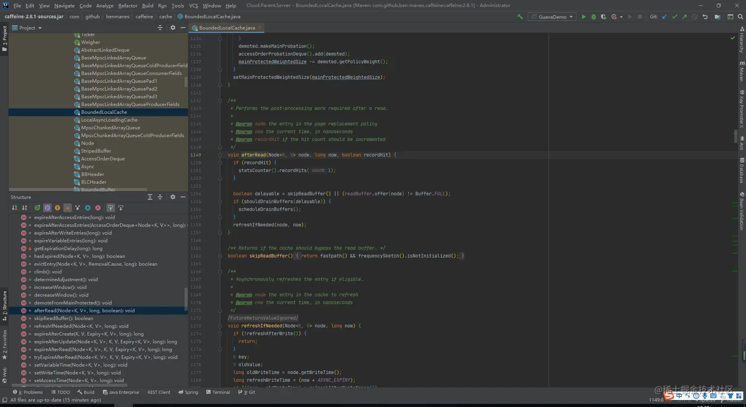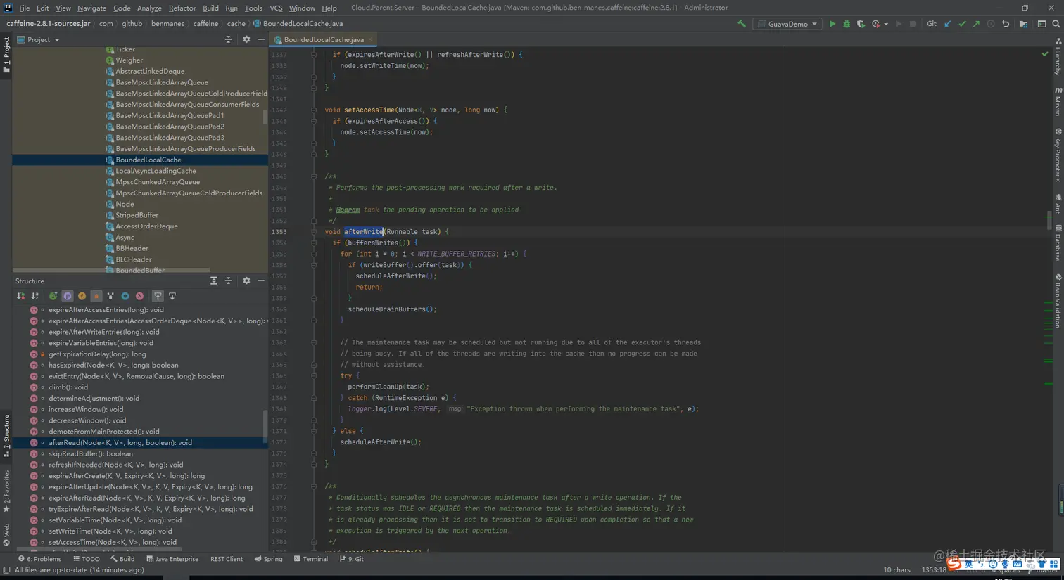 打开BoundedLocalCache类查看afterRead和afterWrite方法