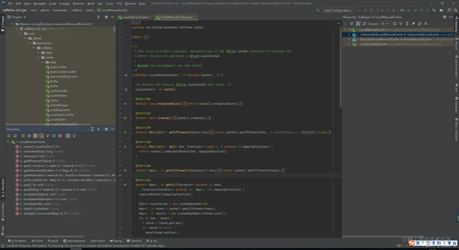 LocalManualCache接口主要有两个实现类UnboundedLocalManualCache和BoundedLocalManualCache