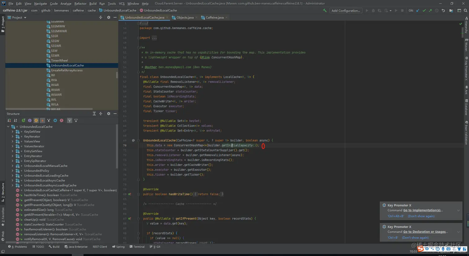 如果在没有配置任何回收策略的情况下则会使用UnboundedLocalManualCache,该实现也是最低限度的提供了缓存的功能