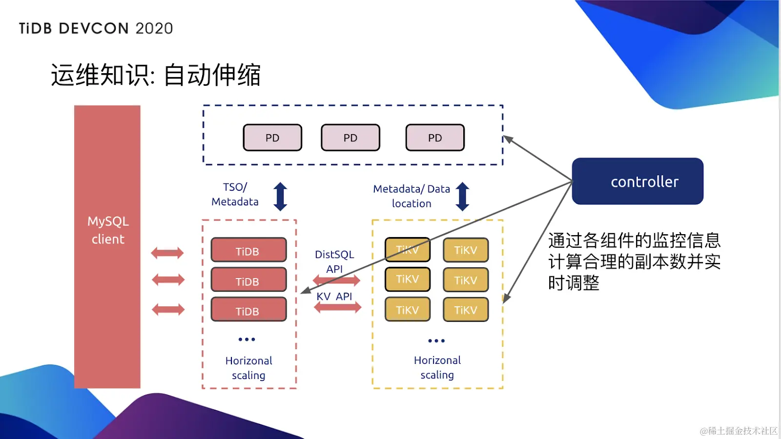 TiDB 能够很好的借助 K8s 环境做水平伸缩;