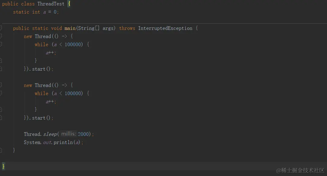 在多线程中,如果多个线程同时更新一个共享变量,可能会得到一个意料之外的值。比如 i=1。A 线程更新 i+1 、B线程也更新i+1。通过两个线程并行操作之后可能i的值不等于3。而可能等于2。因为A和B在更新变量i的时候拿到的i可能都是1 这就是一个典型的原子性问题,至于为什么会出现这种情况,CPU的高速缓存,前面文章中我们讲过,多线程里面,要实现原子性,有几种方法,其中一种就是加 volatile 关键字。