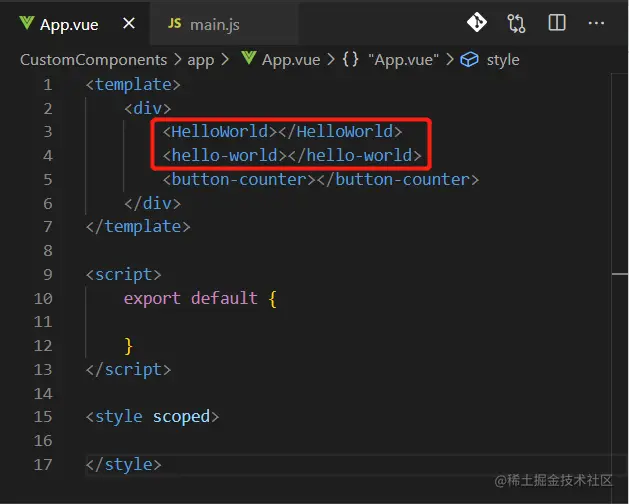 使用驼峰命名法的组件也可以以短横线命名法的方式上树根组件。