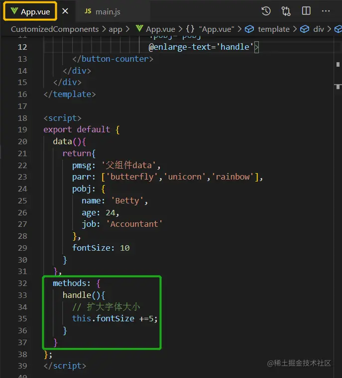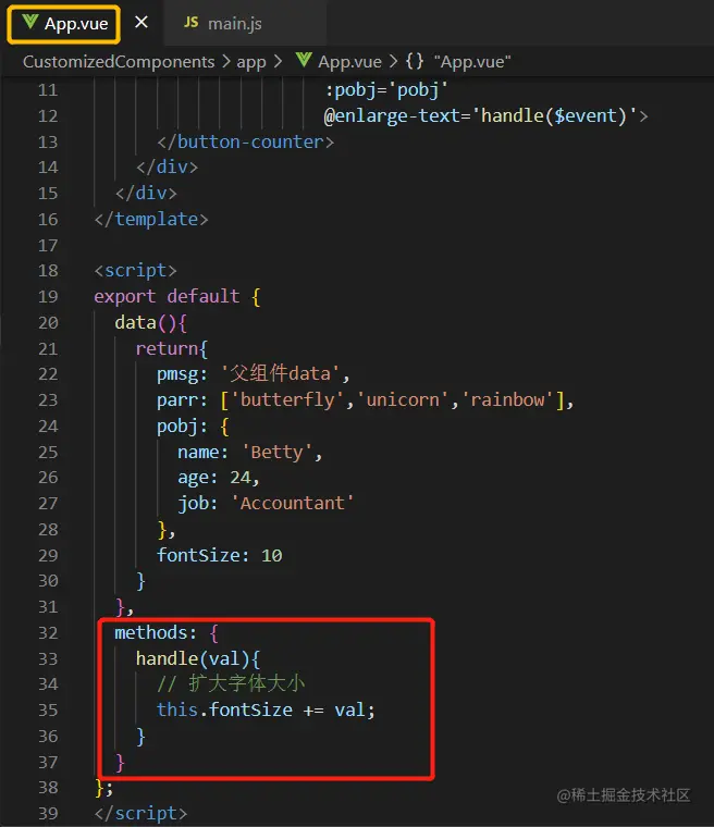 这里自定义事件的任务是,当事件被触发时,获取对方组件的参数并让对方组件中的num加上这个参数。