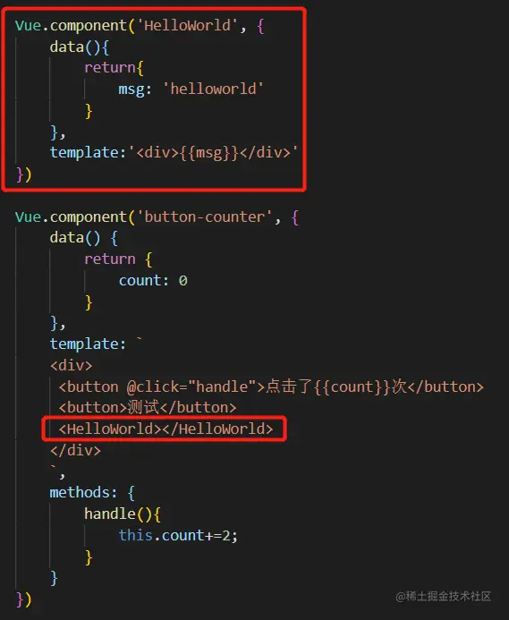 而在webpack打包项目的情况下,注册局部组件也就是子组件有另外的套路,在主页有一篇专门的笔记(https://juejin.cn/post/6844904061766991879),此处不再作讲解。