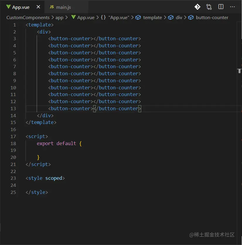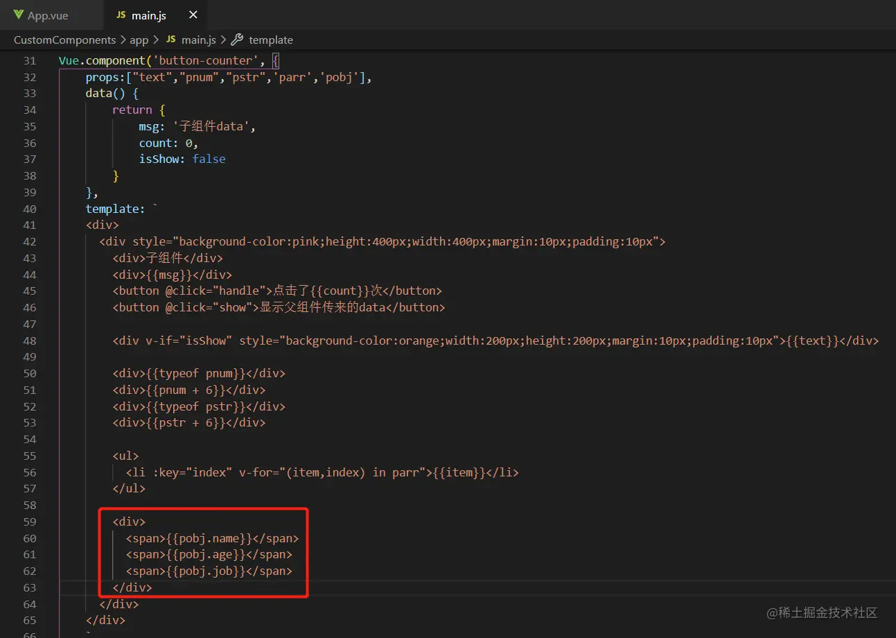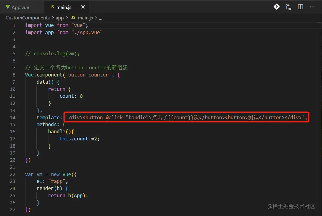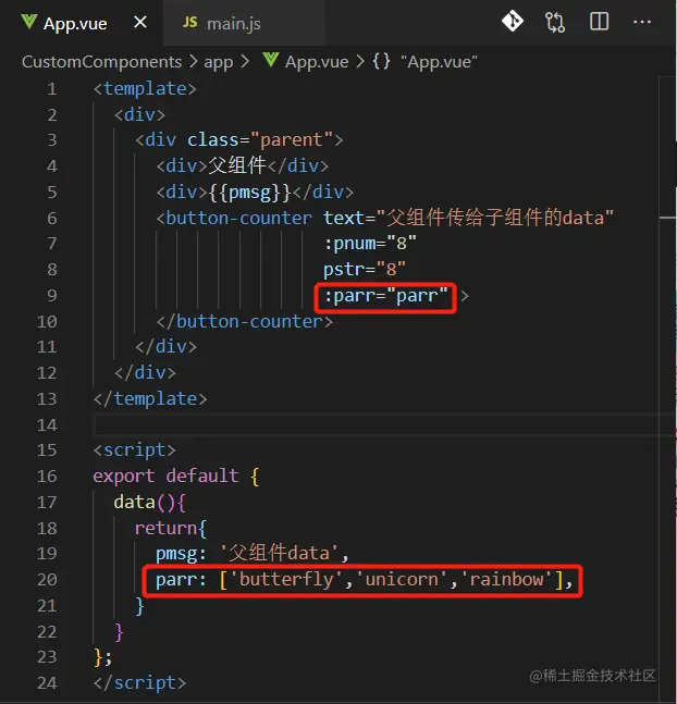 这里就拿button-counter这个子组件来举个栗子,重点分清数据传递的点和线以及父子组件之间的层次关系,有点绕,不懂多看几遍。