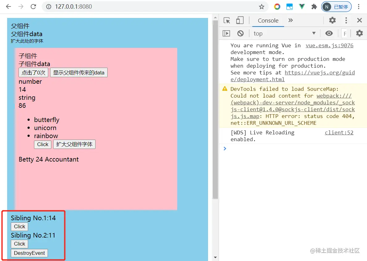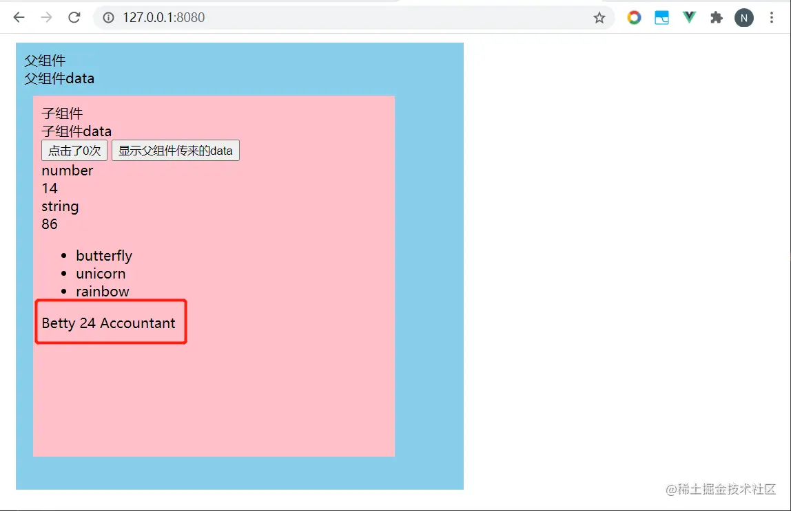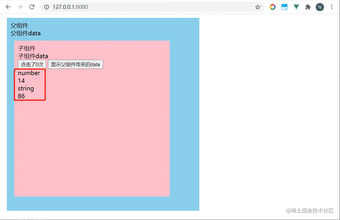 上面关于子组件向父组件传递数据的演示并没有真实地携带数据,而仅仅是在子组件触发了一个事件,这个事件被传递到父组件,父组件监听到这个事件以后触发了在父组件中的一些操作行为。