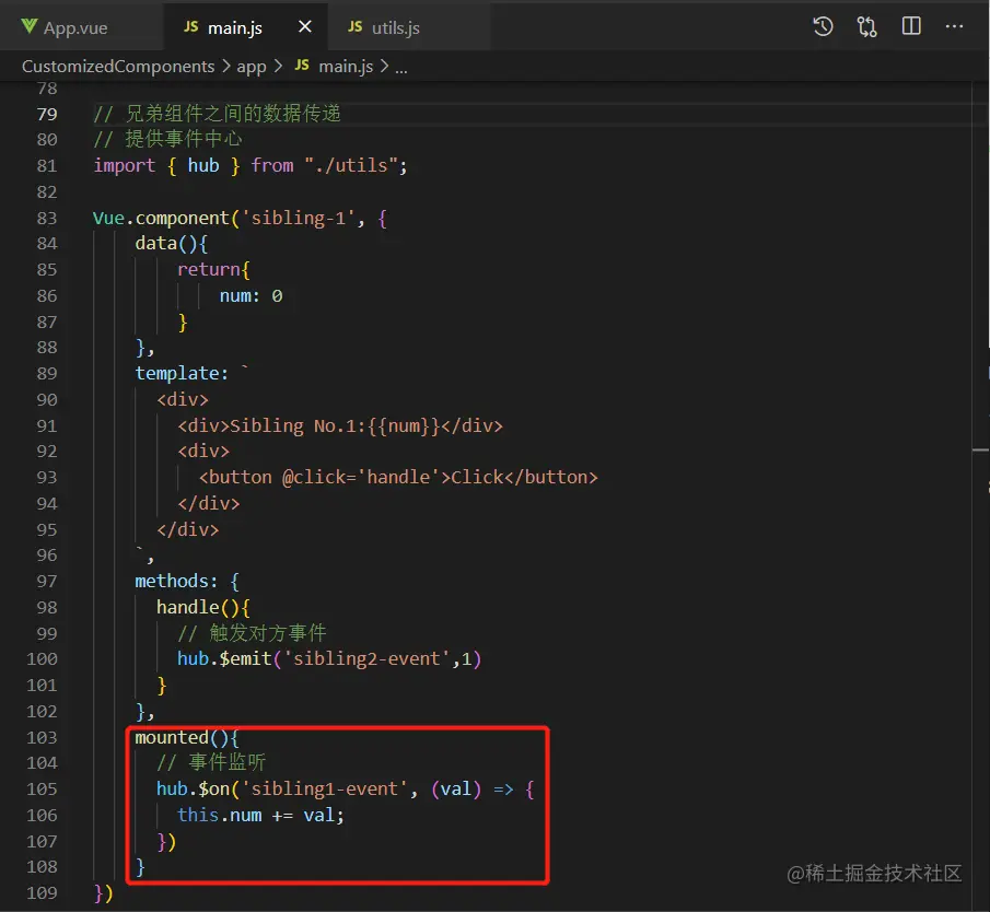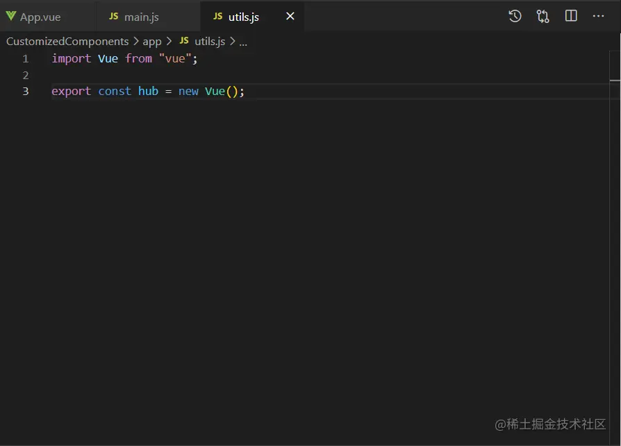 首先另起一个js文件来建立这个事件中心,这个事件中心是需要对外暴露的,这样App.vue和main.js就可以同时与这个事件中心连接。