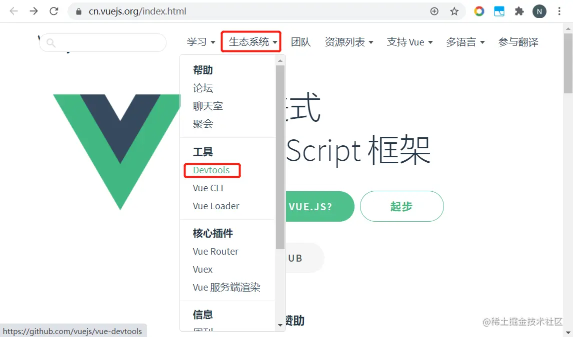 如图点开生态系统菜单下的Devtools来到下载页面下拉到下面会有下载说明,跟着步骤下载安装即可。