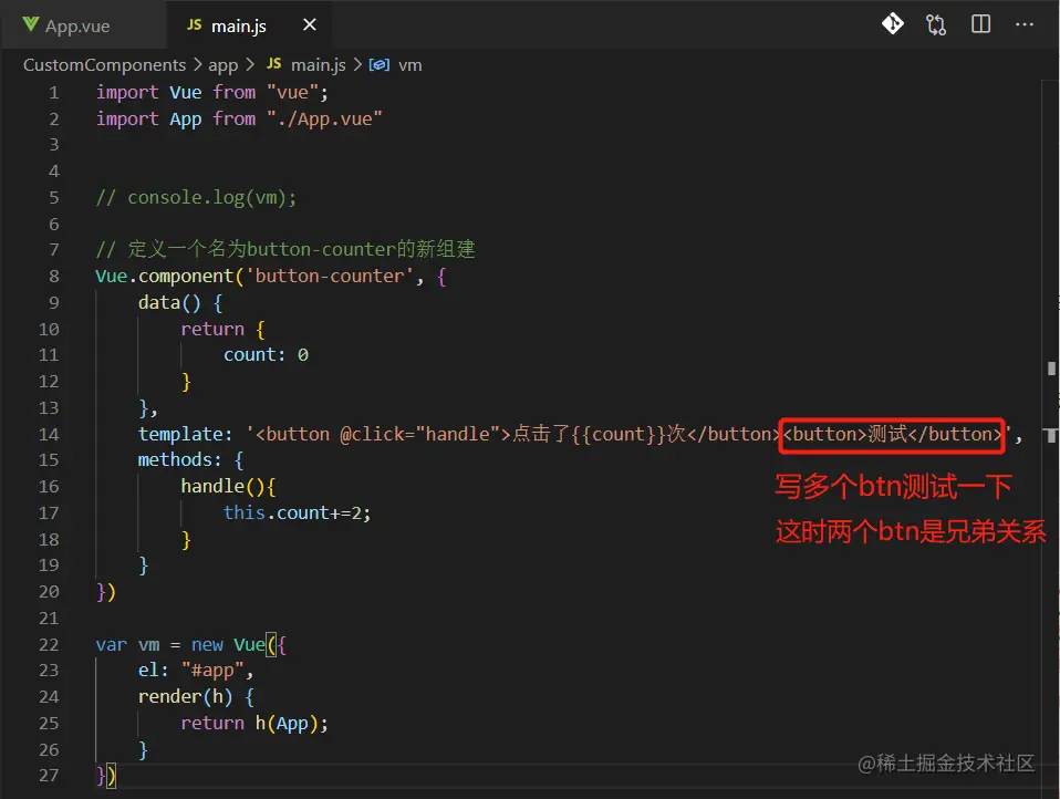 也有办法让以上两个btn变成一个单独的根元素,就是在它们的外层包一个div标签。