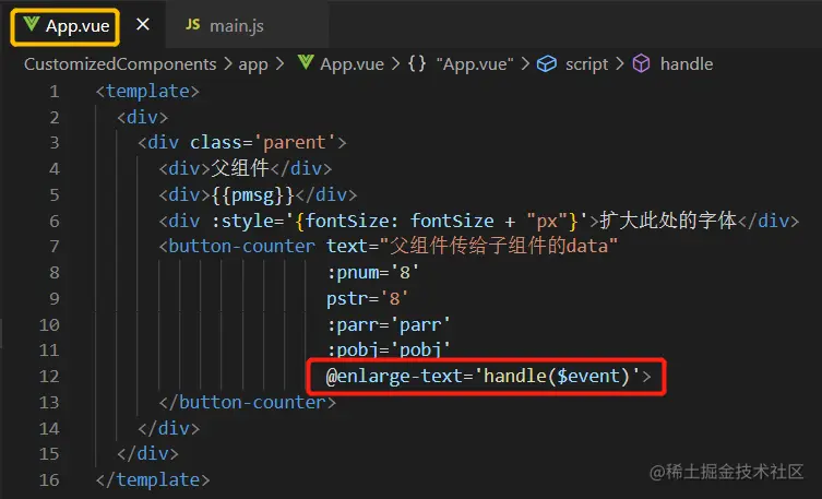 - <button v-on:click='$emit("enlarge-text")'>扩大字体</button>