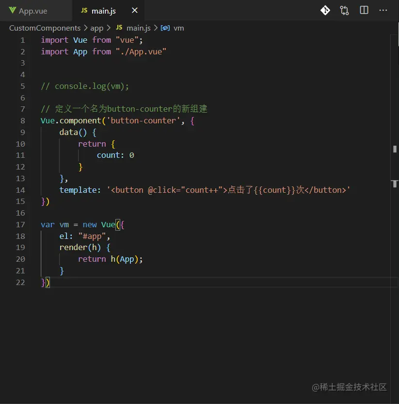 ④组建的命名方式有两种; 短横线命名法 Vue.components('my-component', {/*...*/}) 驼峰命名法 Vue.components('MyComponent', {/*...*/})