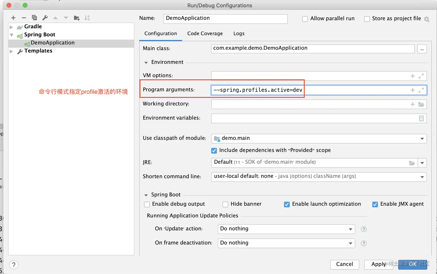 java -jar Demo-0.0.1-SNAPSHOT.jar --spring.profiles.active=dev