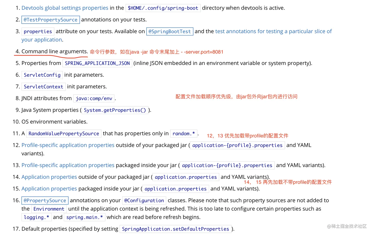 Spring Boot也可以从以下位置加载配置,优先级从高到低,见下图,覆盖,同时实现互补配置。