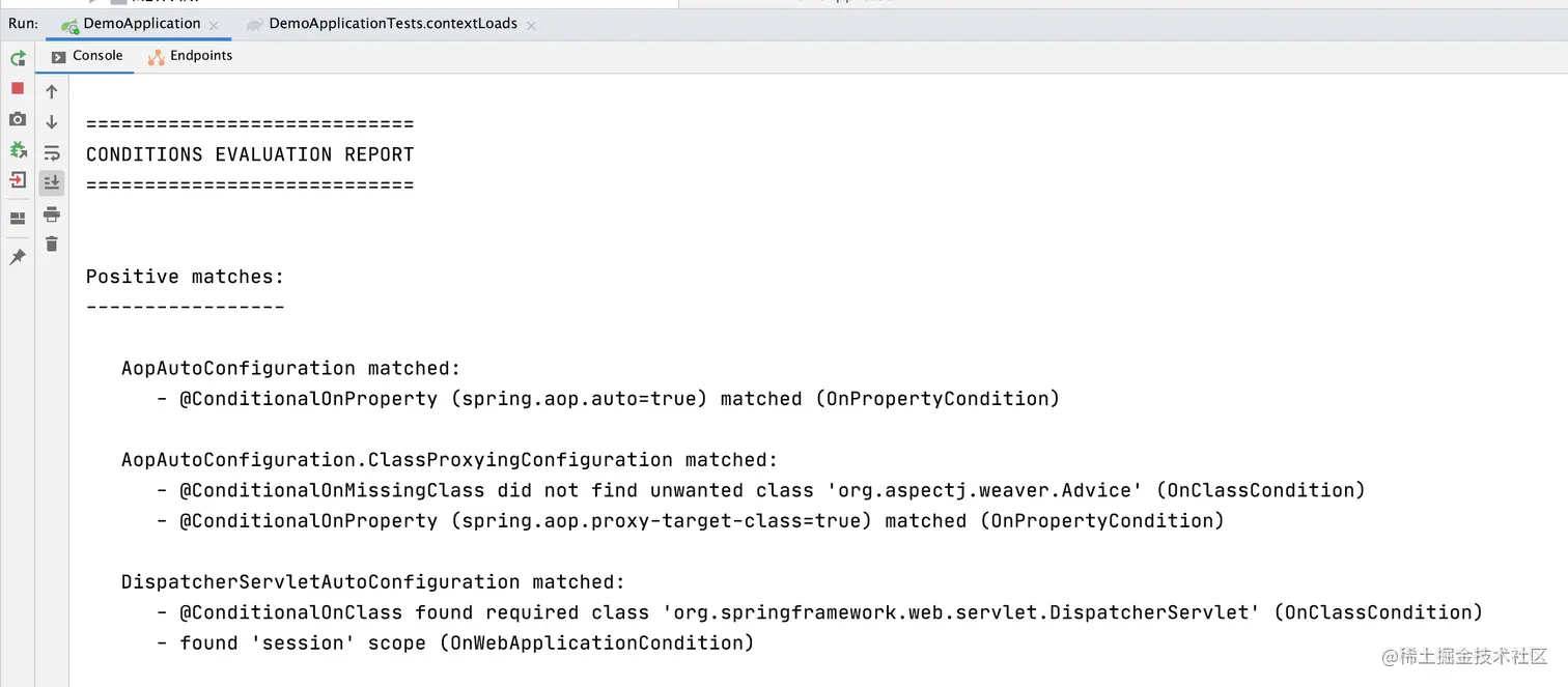 可以在application.properties配置文件中启用debug=true属性(默认为false),可以在程序启动后,在控制台打印出auto-configuration report, 可以看哪些自动配置起作用了。